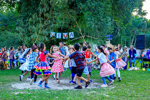Junho é mês de festejos especiais da cultura brasileira. Época de Santo Antônio, de São João, de São Pedro. De milho verde, cocada, amendoim. De roupa xadrez, vestidos floridos, de fitas e chitas. É o tempo de celebrar um dos mais simbólicos festejos da cultura popular. A celebração da cultura popular brasileira é um dos alicerces da nossa escola, assim, a Festa Junina para nós é mais do que apenas uma data, um evento no calendário escolar. Na Viva, a Festa Junina ganha contornos de projeto coletivo mesmo. Nossos alunos e alunas vivem, de fato, cada etapa para a elaboração desta grande festa, que começa na escolha do homenageado a cada ano. A partir dessa escolha, as crianças participam de pesquisas, se aproximam das tradições que envolvem os festejos, constroem elementos e grande parte do que irá compor a ornamentação do evento. As prendas distribuídas nas barracas de brincadeira também são produzidas pelas próprias crianças, que ressignificam materiais e aprendem que há caminhos diferentes do consumo . No dia do evento, reunimos toda a comunidade escolar num espaço aberto e preparado com carinho. As famílias contribuem levando alegria e algum alimento tradicional dos festejos juninos para compartilhar. Cada festa é uma nova oportunidade de nos conectar com parte da nossa cultura e de nos fortalecer como comunidade educadora.