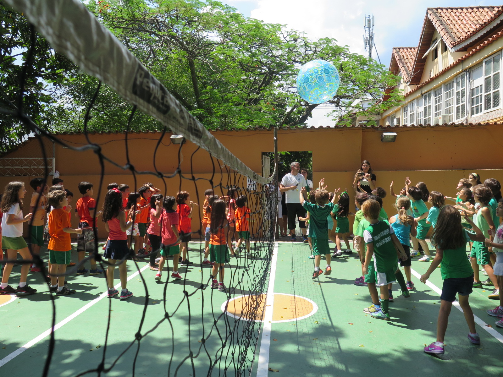 As turmas do Grupo V ao 3º ano foram divididas em duas equipes: verde e laranja e participaram de diferentes situações. Muitas atividades foram realizadas, entre elas: queimado, pique bandeira, caça rabinho, bambolê no cone, futebol, bocha, basquete, atletismo, corrida, vôlei sentado, entre outras.