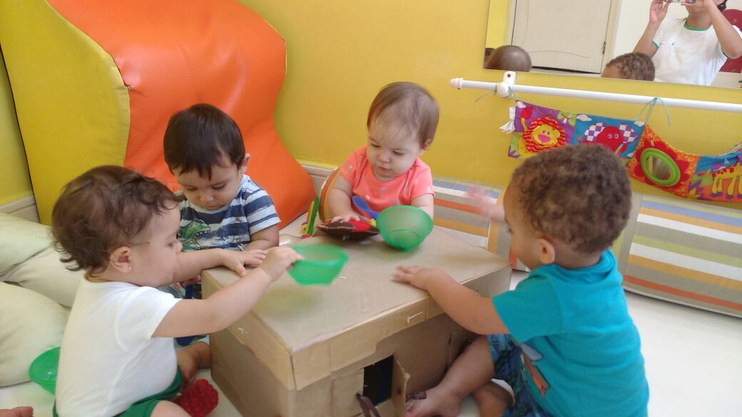 Nossos pequenos bebês entraram em contato com os personagens da história Cachinhos Dourados e os três Ursos em suas explorações diárias. Escondidos em uma caixa que circula pelo espaço, as crianças foram descobrindo cada um deles. Foi assim, através da brincadeira, que elas interagiram com a narrativa, buscando ampliar as percepções e as possibilidades de aprendizagem dos pequenos, fazendo uma parceria com os pais para complementar este trabalho com diferentes versões.