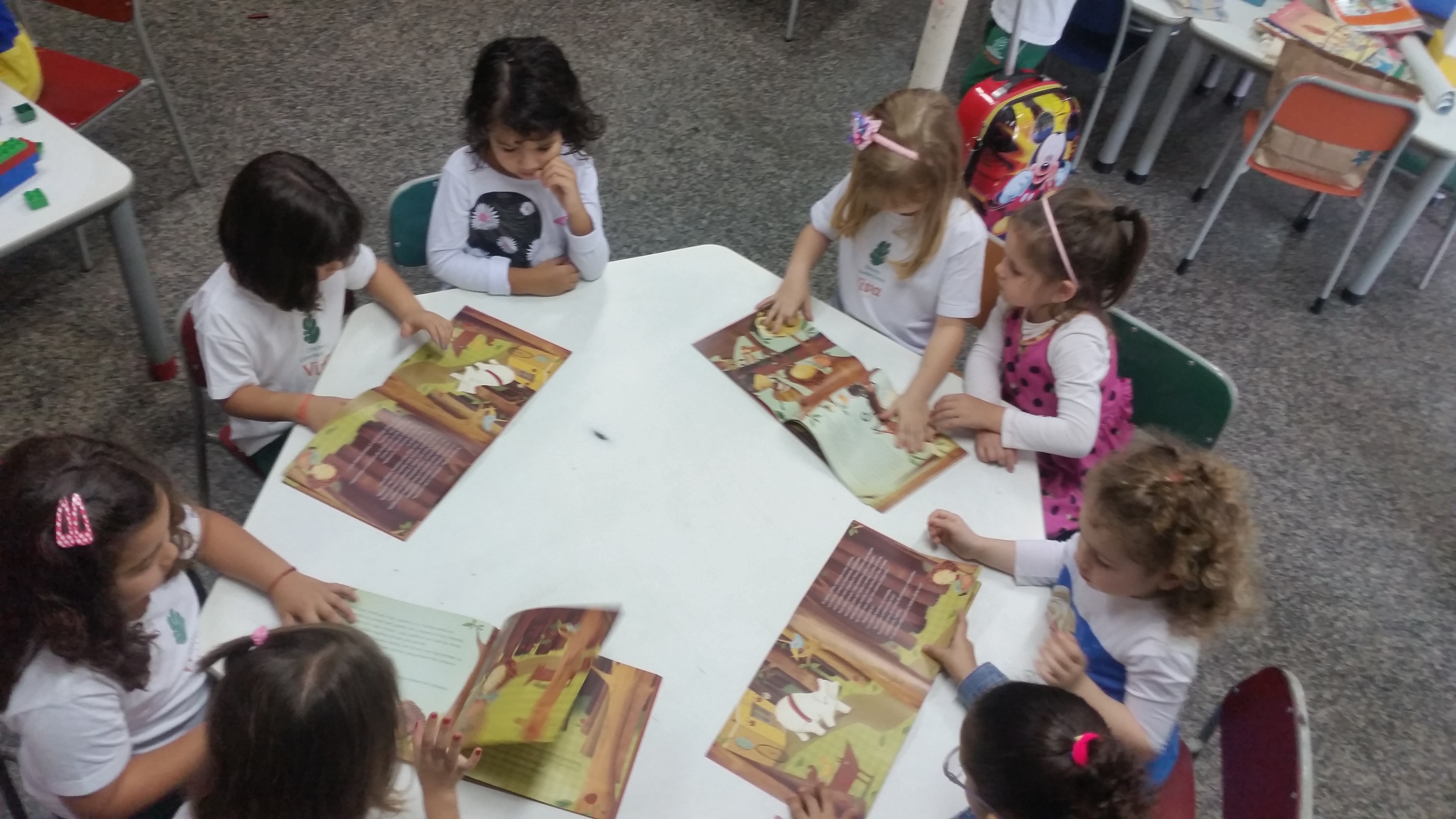 No universo dos Contos Clássicos, nosso trabalho começou com as crianças conhecendo histórias como: João e o Pé de Feijão e Chapeuzinho Vermelho, que as conduziram “floresta adentro”, até encontrarem uma menina que estava passeando por lá carregando nas mãos um livro com apenas uma página com a frase: “Era Uma vez”. O livro Era uma Vez foi o escolhido para esta turma. Ele traz a história de uma menina que, passeando pela floresta, encontra um livro incompleto. A partir de então, uma busca por encontrar o final dessa história começa. O texto de Cacau Vilardo, além de instigante, tem uma linguagem bem interessante para a faixa etária.