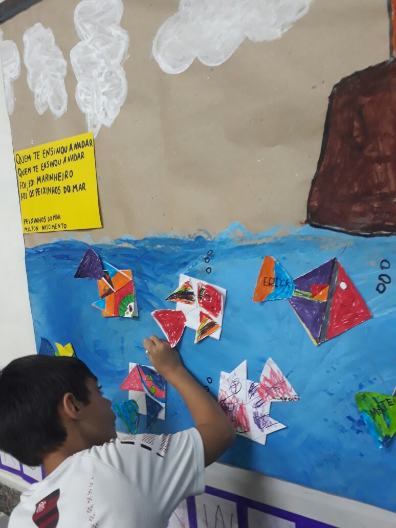 Questionamos qual o maior mamífero que existe - baleia azul - e também o menor - uma espécie de morcego, chamado focinho de porco. Após, perguntamos quem é a criança mais alta da turma e a mais baixa. Lemos a história “Minha mão é uma régua”, medimos a maior e a menor da sala. Depois fomos para o pátio desenhar o tamanho real do filhote da baleia (7m) e do menor(3cm), utilizando a fita métrica. Em seguida questionamos, quantas crianças cabiam dentro desses animais. Trabalhamos a estimativa mais/ menos. Após essa experiência, fomos para sala fazer o registro na folha.