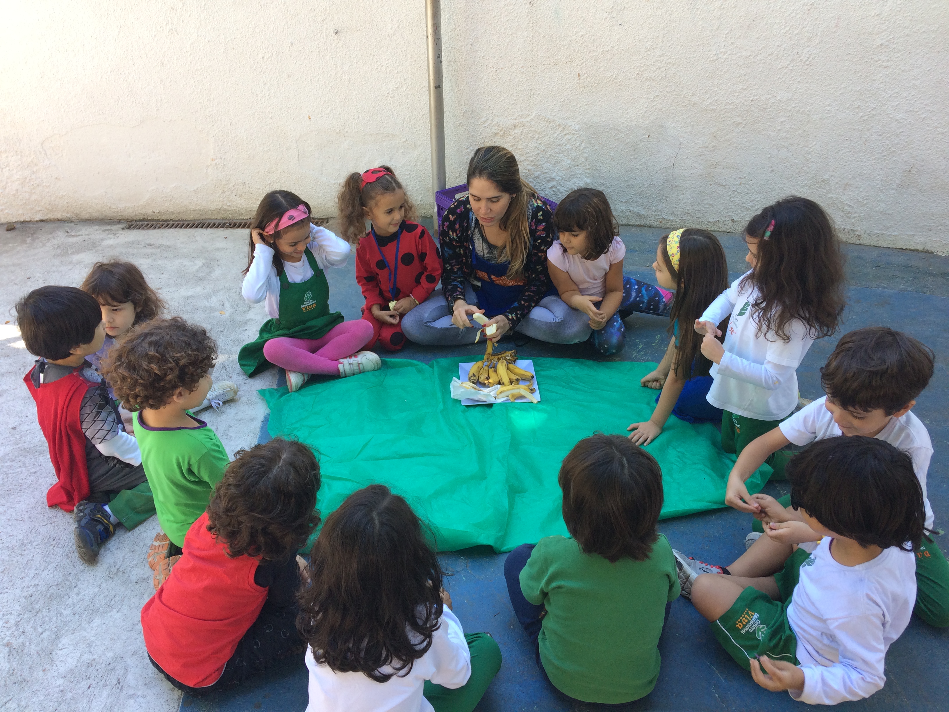 O Grupo IV está explorando o tema "Fruits" nas aulas de Inglês. Na última semana, em um dos encontros com a Teacher Carla, as crianças observaram melhor uma das frutas presentes no seu dia a dia, a banana! Muito entusiasmados, o grupo tocou, descascou e ainda provou a fruta, tudo in English!!! Yummy!