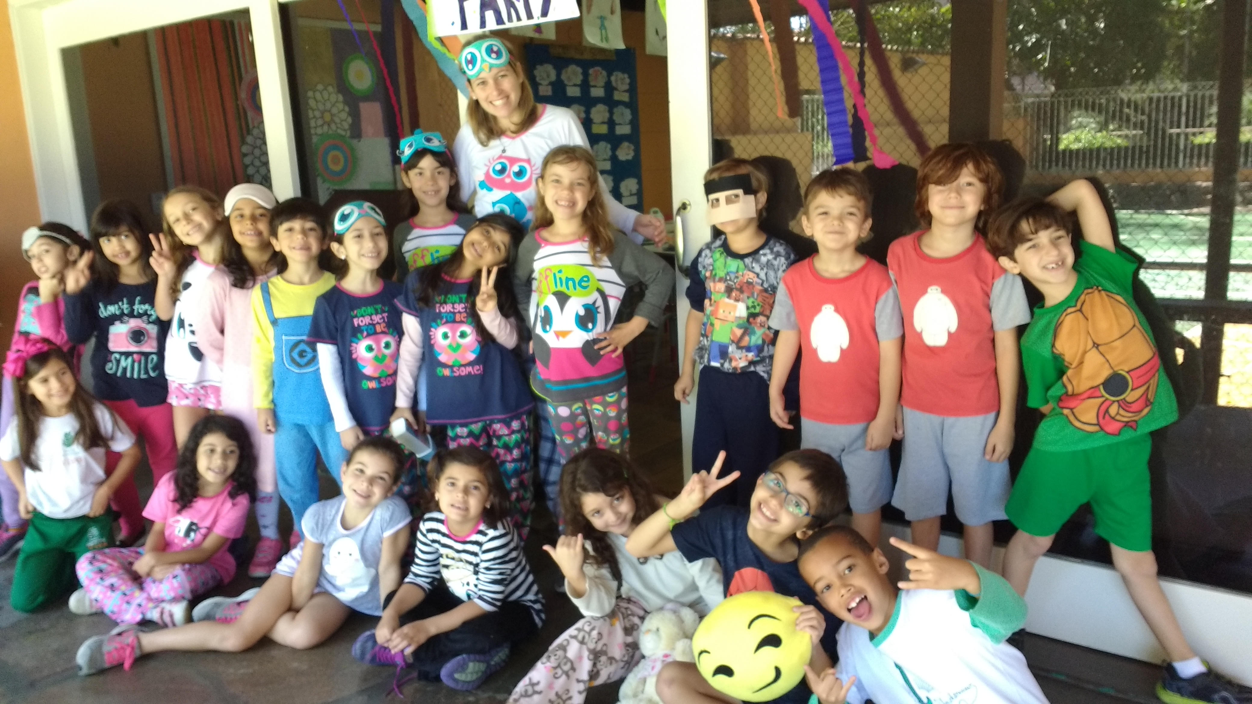 O 1º ano está explorando o tema “Clothes” (Roupas) na unidade 8 do livro. Para explorarmos o assunto de forma ainda mais divertida, tivemos uma animada "Pajama Party" (Festa do Pijama) no dia 25 de agosto. As crianças vieram para a escola vestindo seus pijamas e/ou camisolas e todos aproveitaram bastante a manhã! Na hora do "fashion show" (desfile) cada um descreveu o que estava vestindo para o grupo. Foi uma farra!