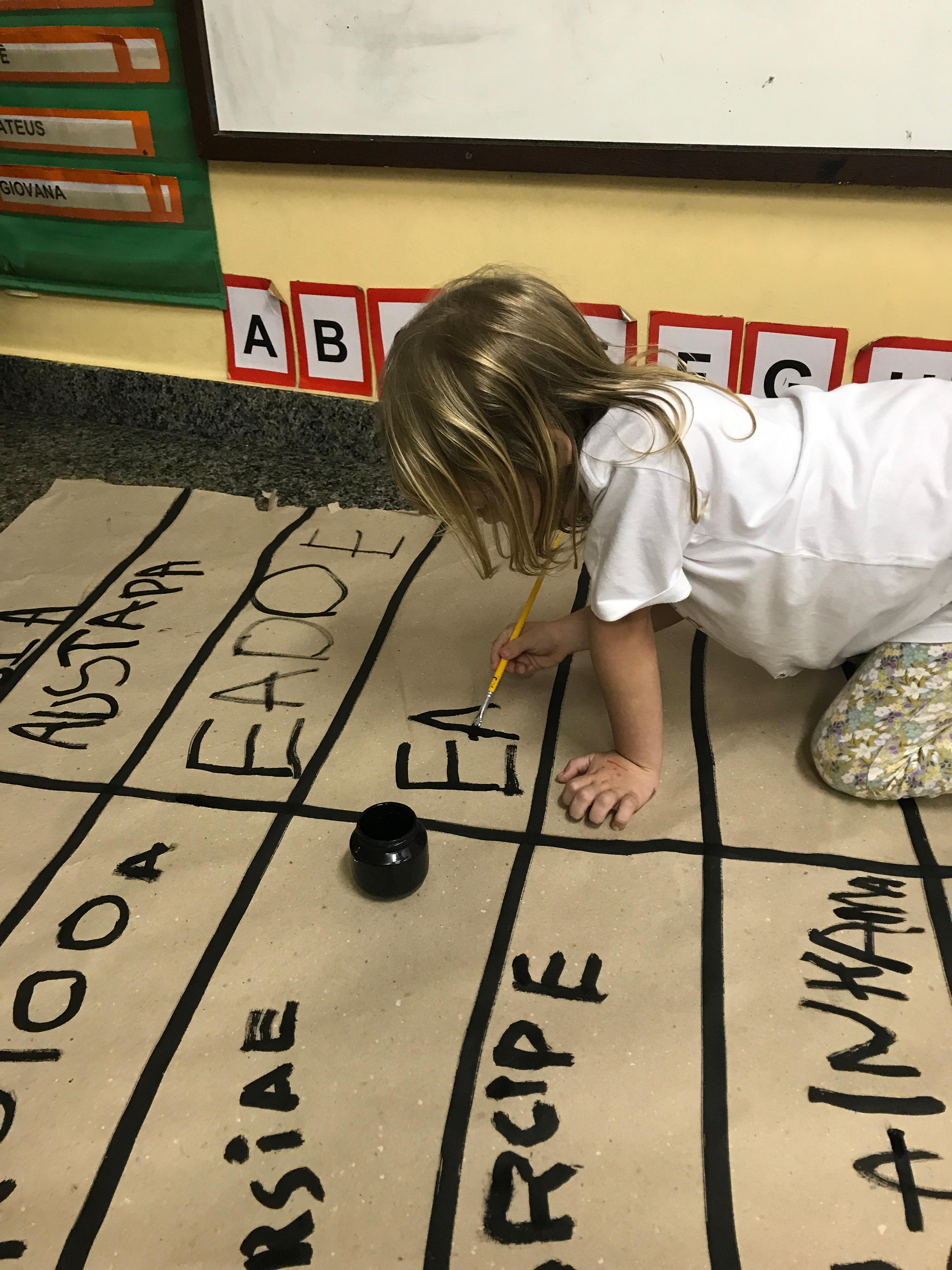 Tivemos uma atividade de leitura e realizamos um bingo com os nomes dos personagens do Livro do Projeto. Conforme as letras vão sendo sorteadas, as crianças vão pintando as letras que aparecem nos nomes dos personagens. A criança que pintar todas as letras primeiro, grita bingo.
