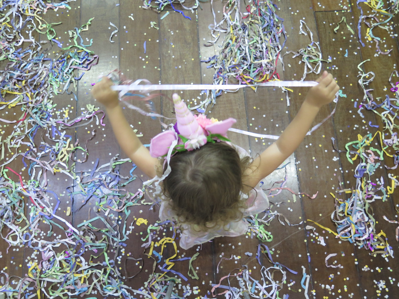 Com confete e serpentina