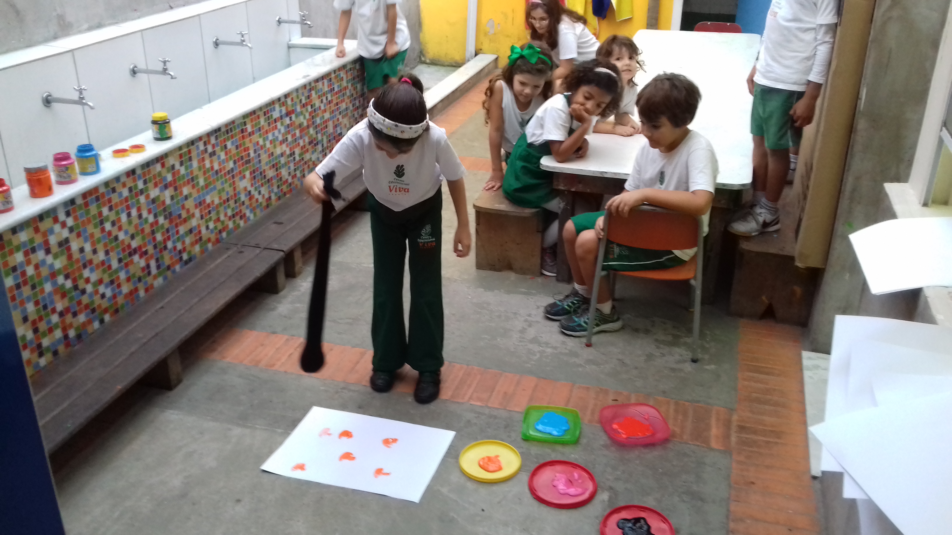 Exploramos, através das sombras, quais as novas formas que podemos criar. Além do nosso corpo, usamos também as sombras das folhas e dos galhos.