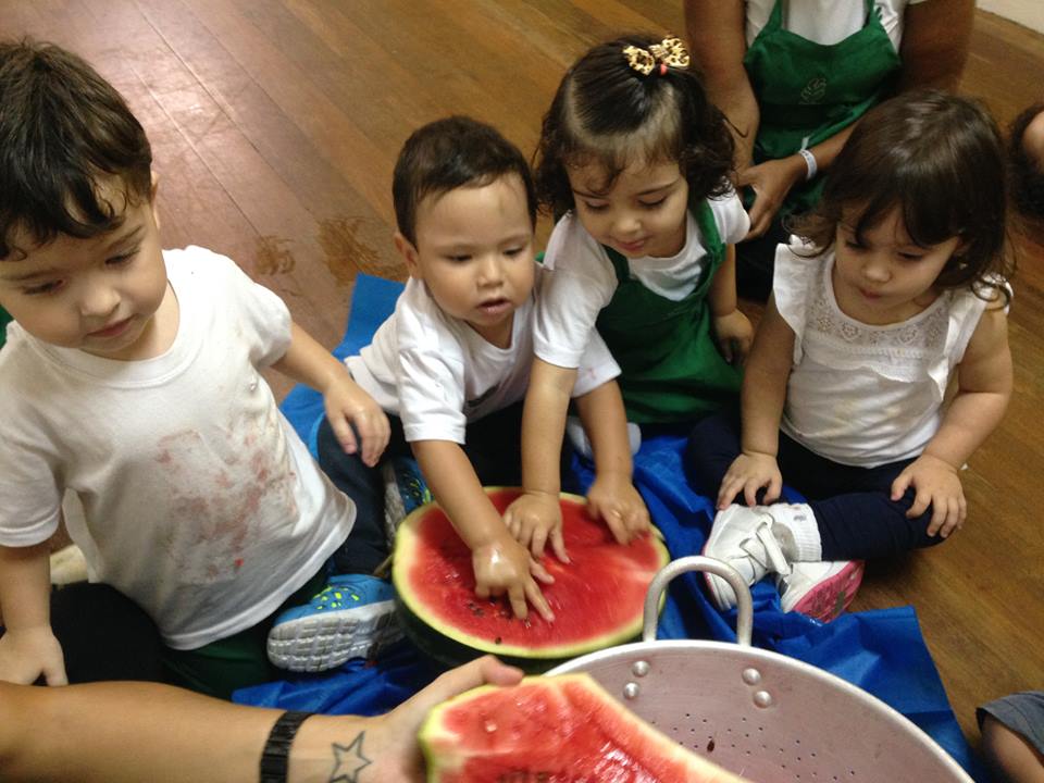 Adoramos experiências! O que acontece quando colocamos água na bacia e levamos ao congelador? E se acrescentarmos folhas e gravetos ao gelo que se formou, cobrindo com mais água do dia seguinte? O Grupo I fez suas descobertas, como parte do nosso trabalho com os elementos da natureza.