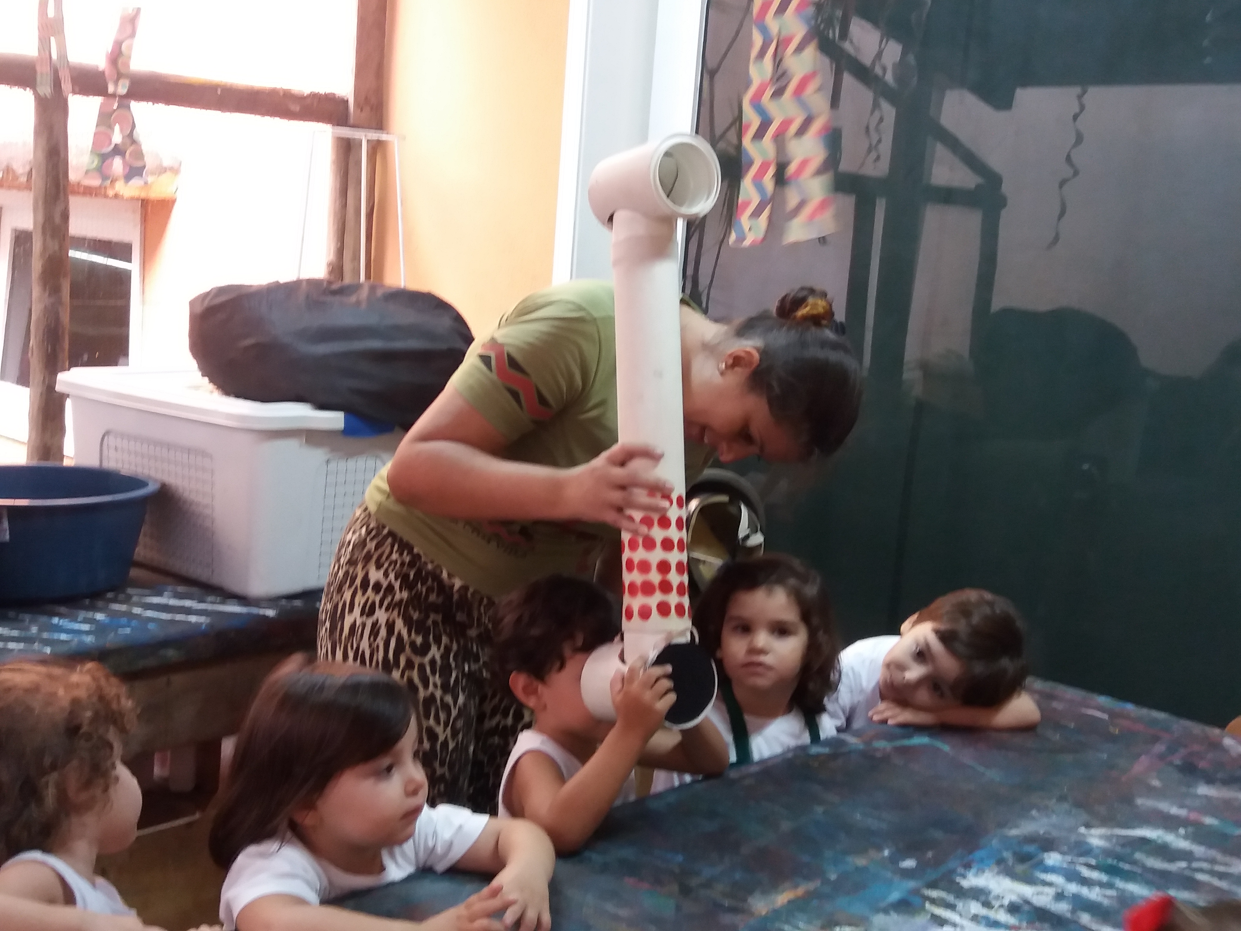 As crianças do Grupo IIA fizeram uma pesquisa em casa sobre as minhocas e apresentaram suas descobertas na escola. Nesta pesquisa, descobrimos que a minhoca é muito importante para o solo e que ela ajuda a fazer os buraquinhos na terra para a absorção da água pela raiz, ou seja, ela ajuda a adubar a terra. Também descobrimos que a minhoca rasteja, não enxerga, não escuta e mora embaixo da terra.