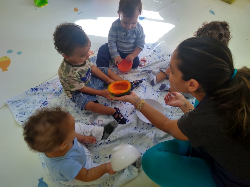 O Berçário vivenciou o tema "Vegetables" nas aulas de Inglês. Para deixar o aprendizado ainda mais gostoso, teacher Julia levou "pumpkin" para um delicioso lanchinho.
