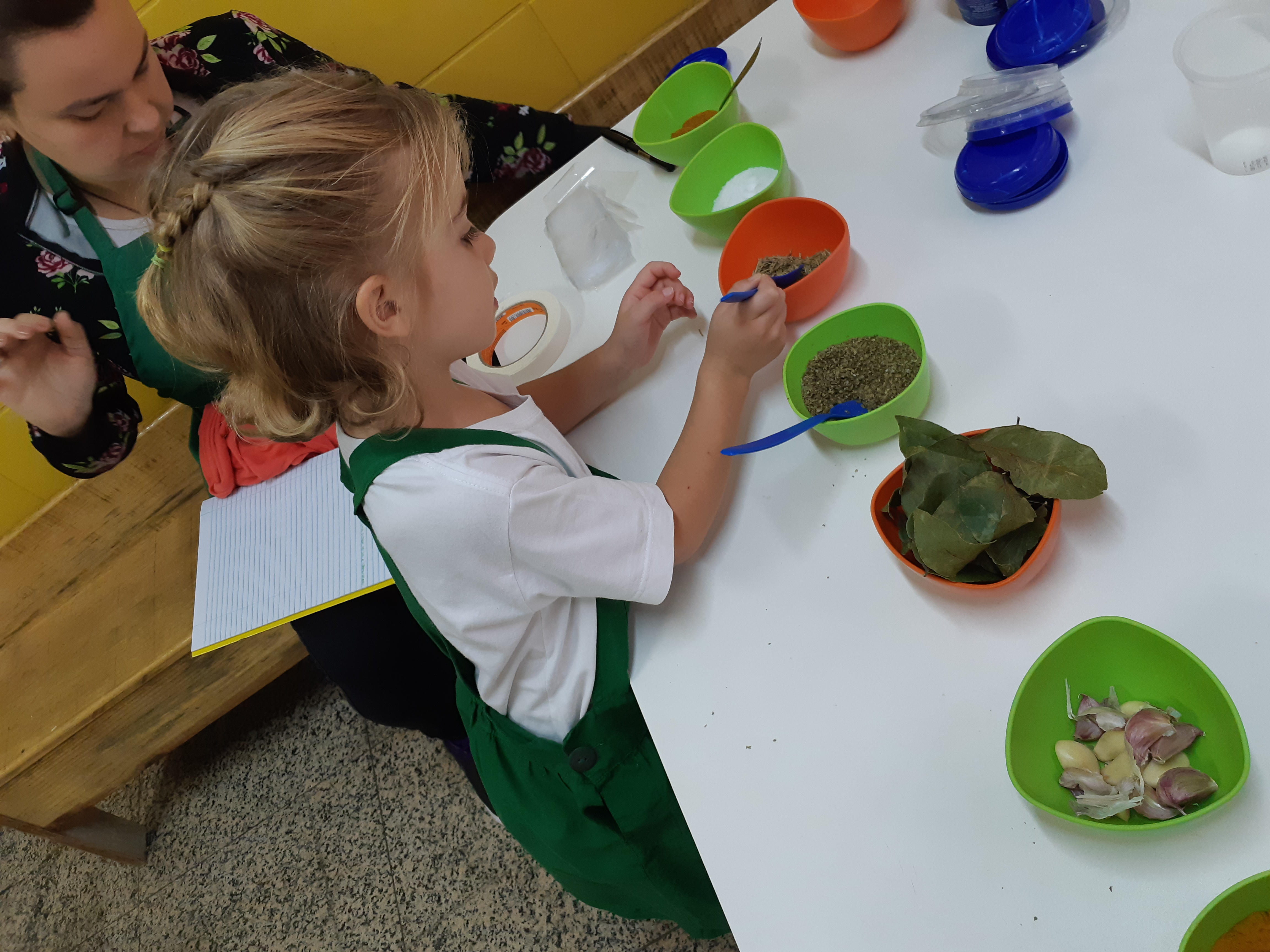 No mês de junho, nossas crianças do Integral plantaram e colheram temperos em nossa horta. Pudemos explorar o cheiro, textura, cor e sabor de cada um. Com os temperos colhidos, elas criaram seu próprio mix. A turma também fez as embalagens e nomeou seu mix. Com tudo pronto, foi a hora de temperar um frango. Todos se deliciaram depois!