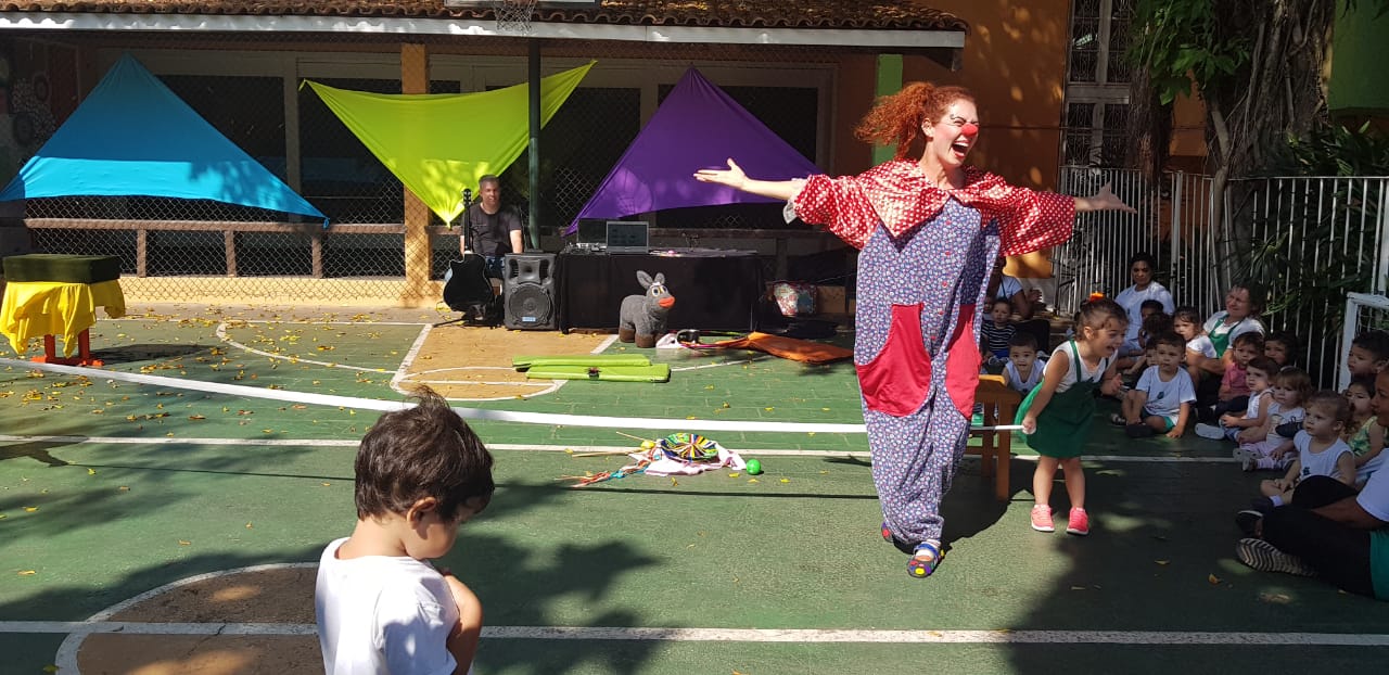 Na Semana das Crianças nos divertimos com a palhaça Muriçoca, que fez muitos números para a criançada. Tivemos até um "grande número de Equilibrismo, nunca visto antes na face da Terra". Quanta emoção!