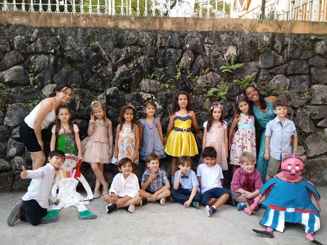 O livro do projeto literário do Grupo V se chama “Era uma vez”, de Cacau Vilardo. Após as observações com a mediação das professoras, como: autor, ilustrador, editora, ano de edição, ano de publicação e dedicatória, levantamos hipóteses a partir da primeira página. Os alunos do Grupo VB foram convidados a vivenciar uma leitura compartilhada no pátio, marcando a estreia da obra em sua totalidade. Depois da leitura, eles tiveram o momento de “crítica textual”, onde conseguiram identificar contos clássicos no enredo da história, como: João e Maria, Cinderela, O pequeno polegar, Gato de botas, entre outros.