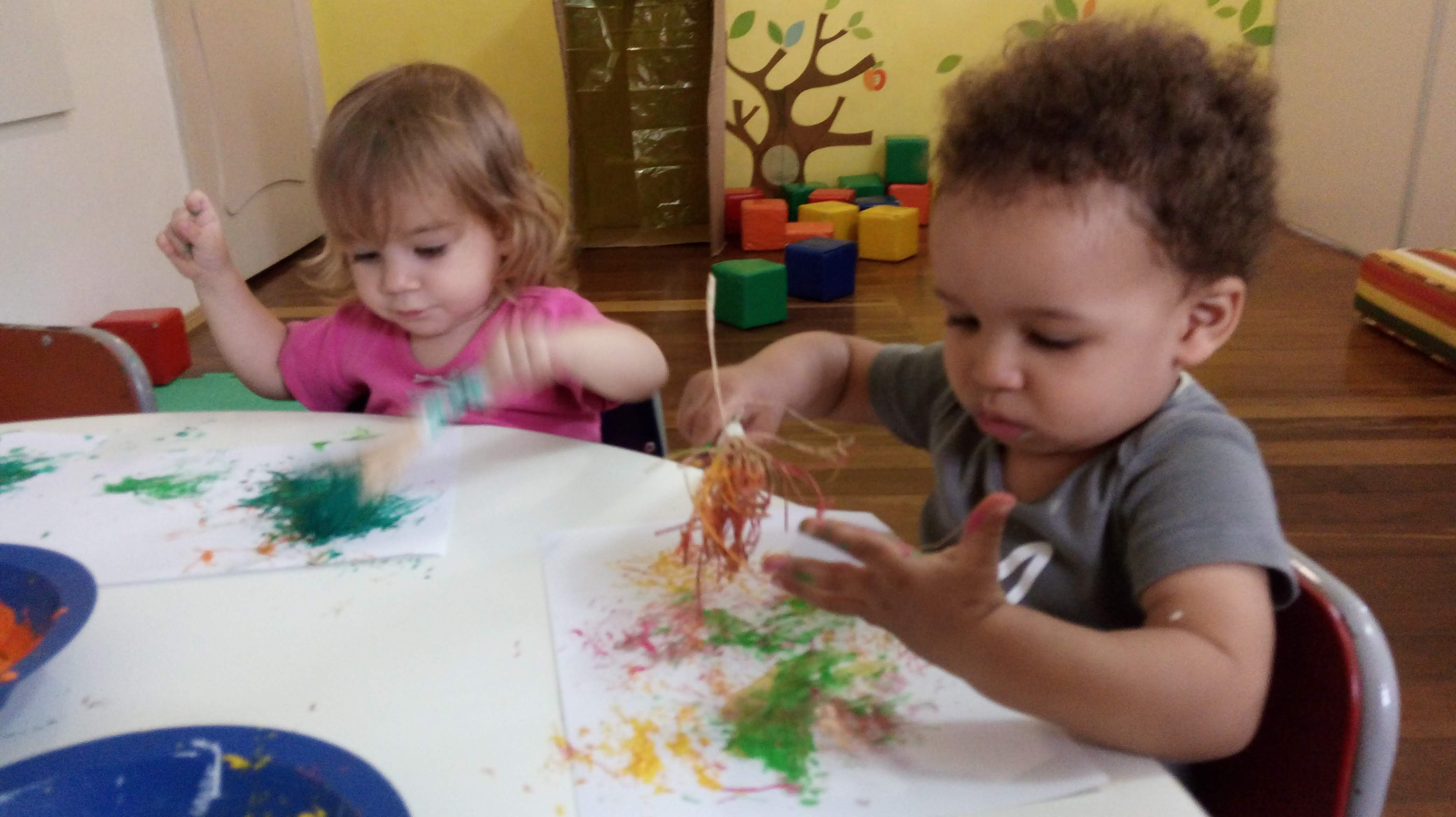 Após a exploração da palha, o grupo realizou uma pintura utilizando este material como pincel.