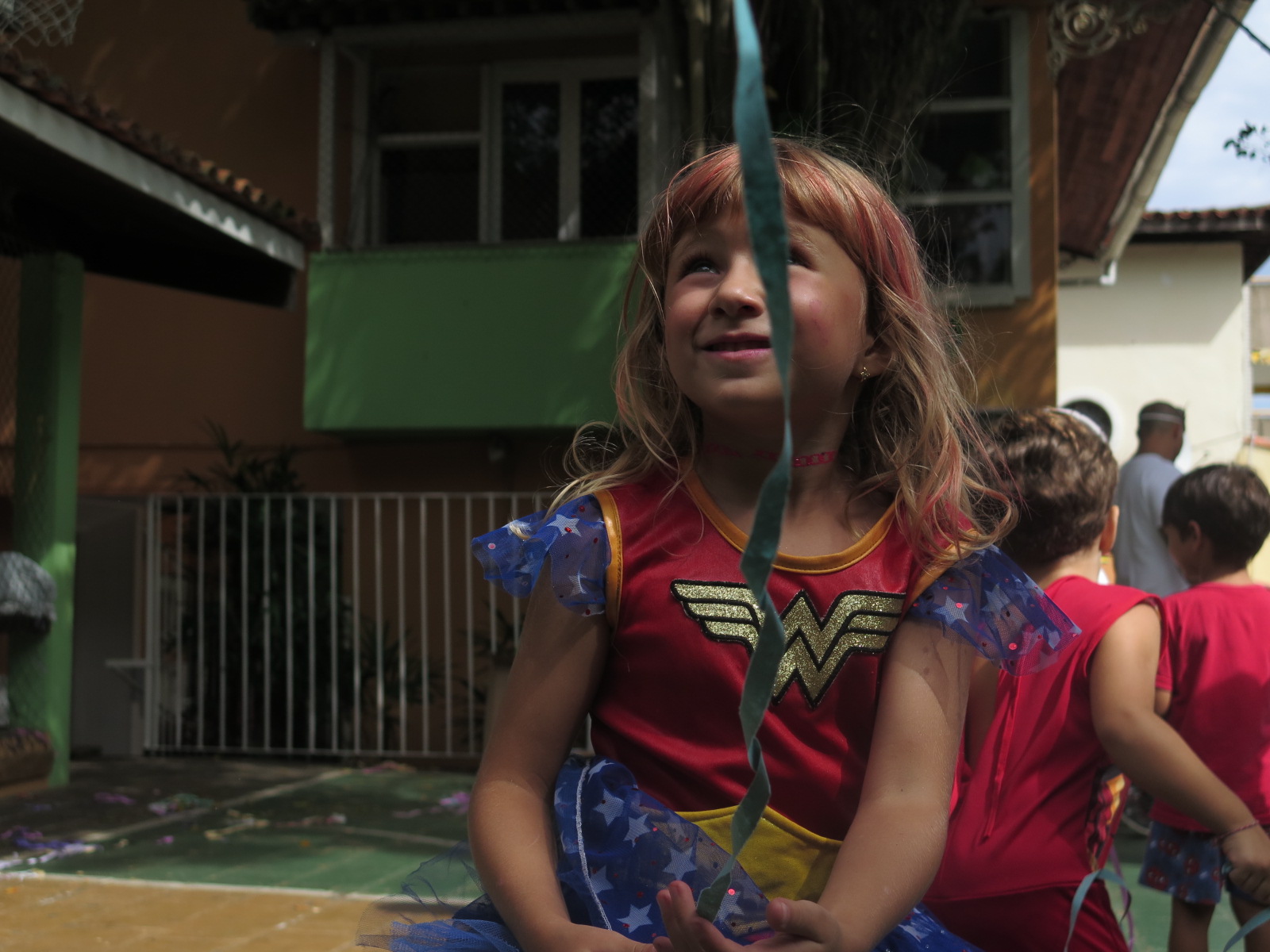 Teve muita serpentina e marchinhas no nosso carnaval, com toda a energia e alegria da nossa professora de música Eulinda e nosso professor de cultura popular Vinicius. Foi uma farra só!